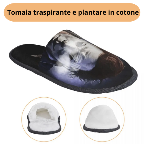 Ciabatta donna/uomo invernale. Con stampa 3d horror, Halloween. Morbide, calde, antiscivolo, in memory foam.