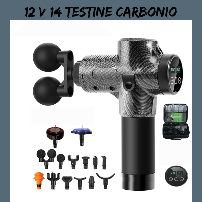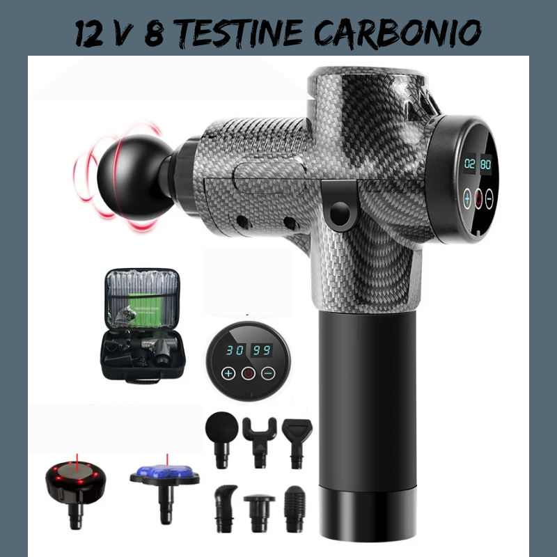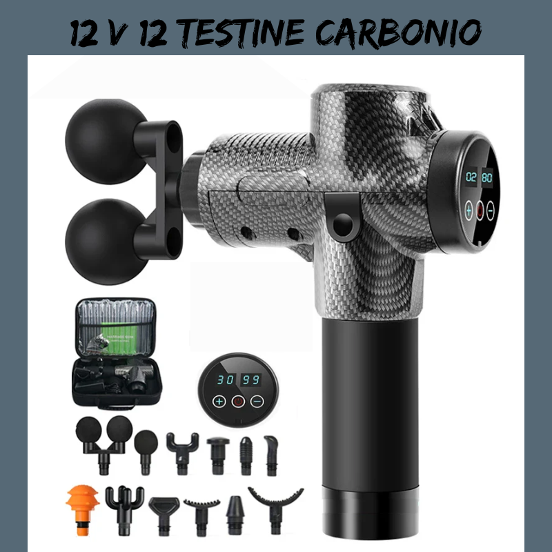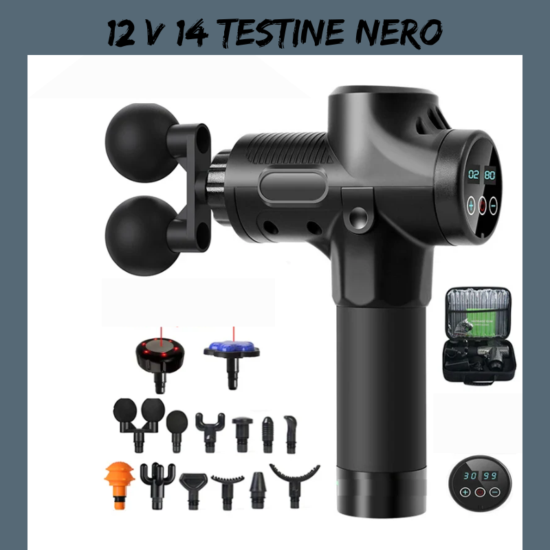 💪 Massaggio a percussione potente: motore brushless da 12V con impatto fino a 15 kg , corsa da 12 mm e frequenza regolabile da 1800 a 3200 giri/min , per penetrare efficacemente nei tessuti muscolari profondi.