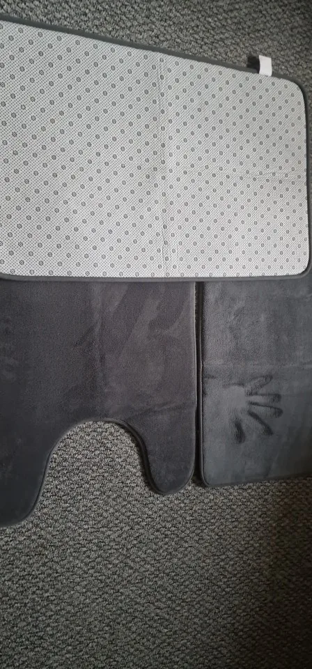 Set 3 pz per bagno, composto da 2 tappeti e 1 coperchio del Wc pelo corto, assorbenti antiscivolo.