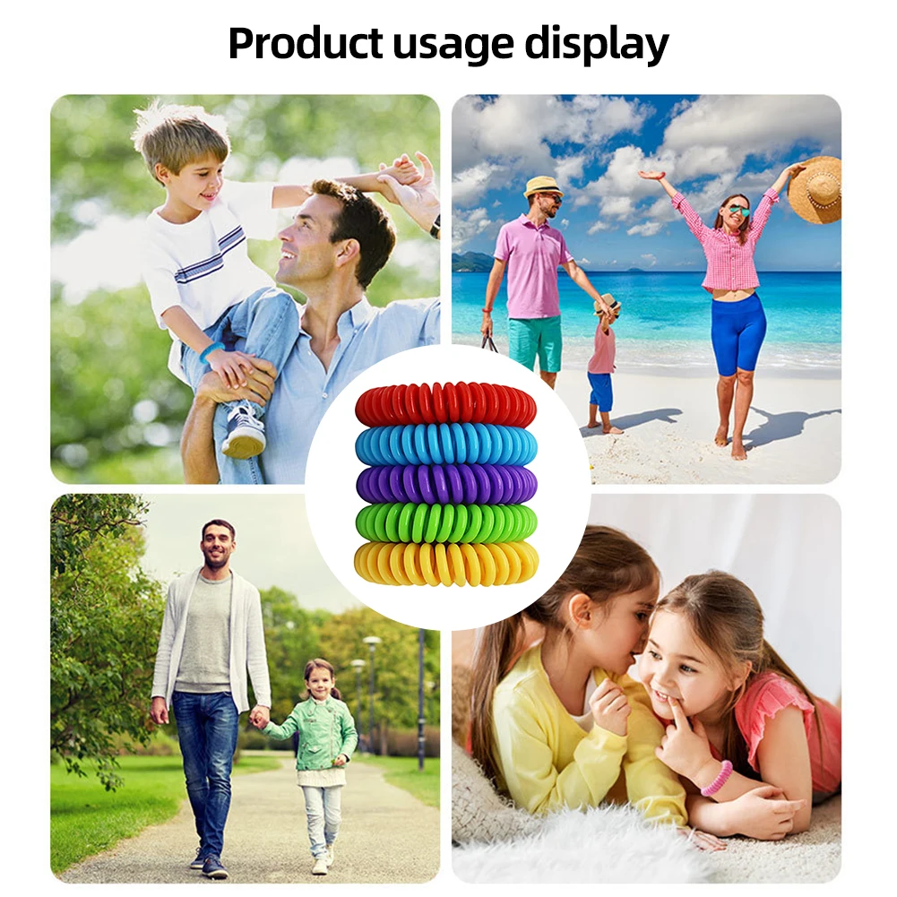 Braccialetto repellente per zanzare colorato, multi-misura, colori assortiti.