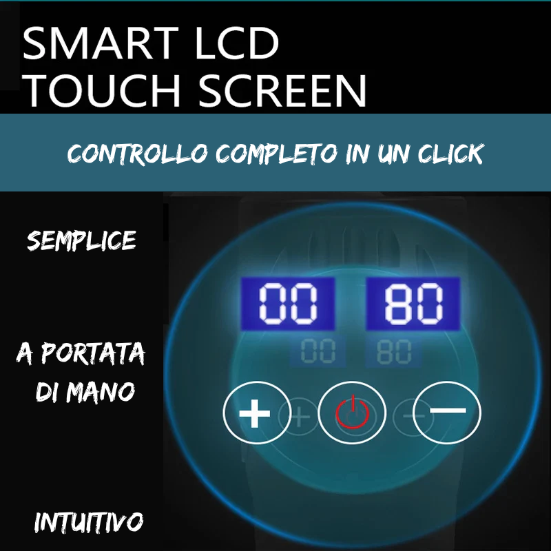Sistema avanzato con protezione automatica: spegnimento dopo 10 minuti di utilizzo continuo e regolazione intelligente della potenza in base alla pressione esercitata.