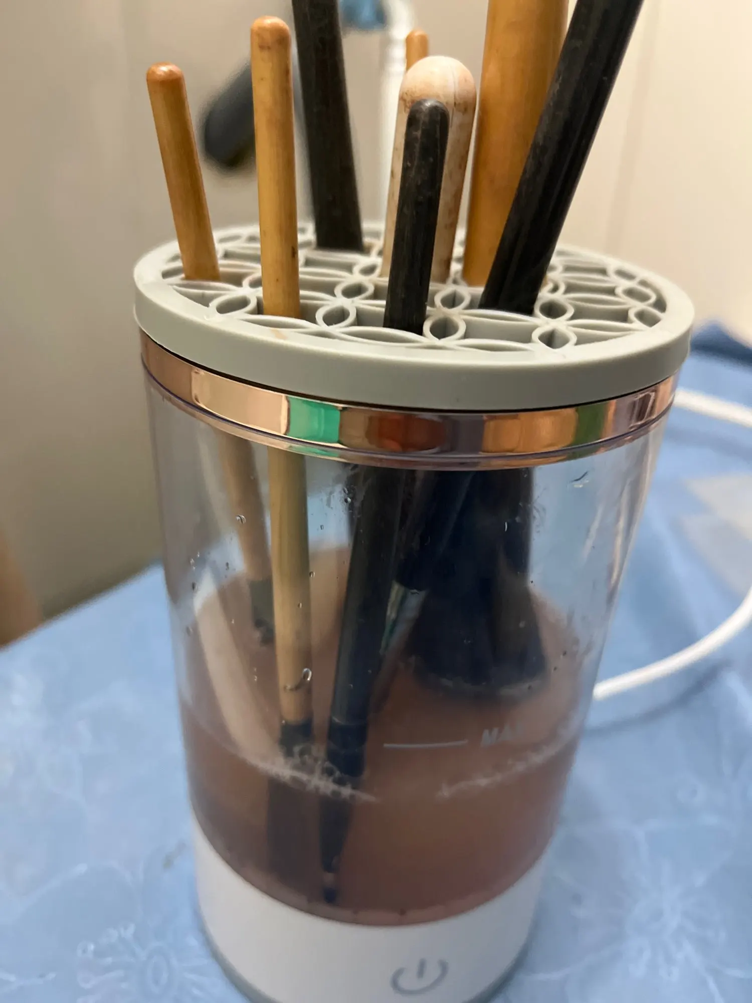 Dotata di motore potente e silenzioso , pulisce i pennelli in pochi secondi con una rotazione ad alta velocità che rimuove efficaci residui di trucco, sebo e impurità .