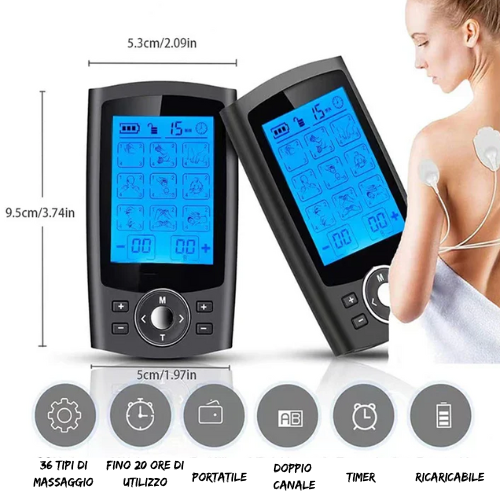 ♂️ Scopri il sollievo naturale e immediato dal dolore con il massaggiatore elettrico TENS multifunzionale , progettato per offrire trattamenti terapeutici professionali direttamente a casa tua!